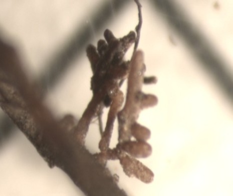 Ectomycorrhizal fungi (bulbous white and black root ends) on an Oak root